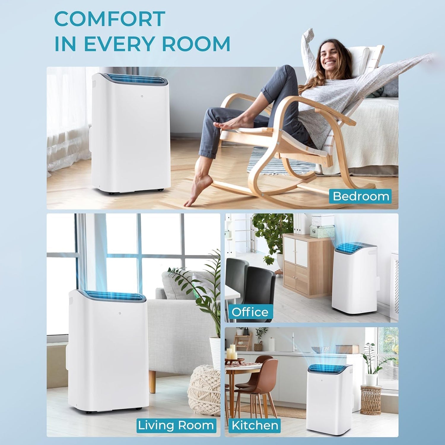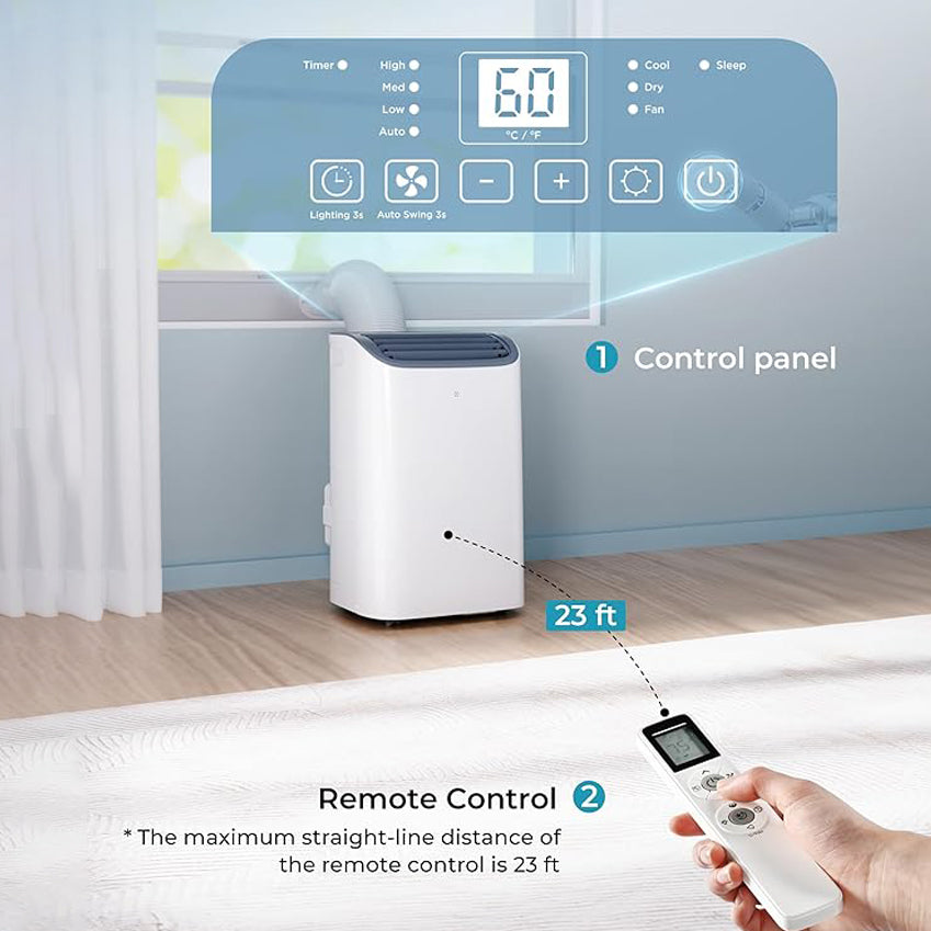- ❄️【𝟐 𝐂𝐨𝐧𝐭𝐫𝐨𝐥 𝐖𝐚𝐲𝐬】: The sleek and energy-efficient air conditioner portable features an LED display that provides a clear temperature and icon display. With an impressive 23 ft control distance, this remote offers unparalleled convenience, allowing you to adjust settings from most places in the room or from a distance without bending over. The intuitive design ensures easy operation through simple button touch-friendly controls. This indoor air conditioner is perfect for those seeking a powerful portable ac unit, delivering quiet operation and optimal cooling performance to enhance your comfort and energy savings